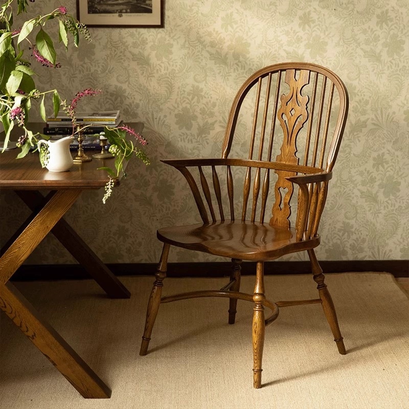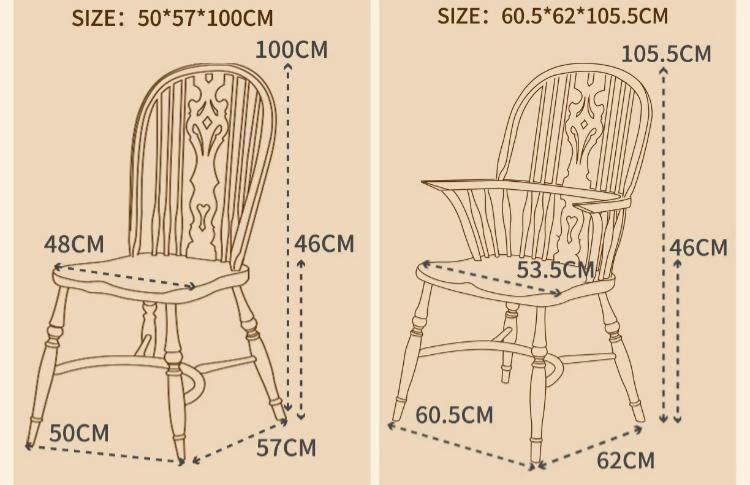 Our solid wood Windsor armchair is a masterpiece of traditional woodworking, combining robust construction with refined details. Crafted from 100% solid wood, it boasts a distinctive Windsor-style spindle back adorned with intricate openwork carvings, creating a striking visual focal point. The 2mm thin handrail is meticulously finished to be smooth and safe, while the 4cm thick saddle-shaped seat offers exceptional comfort for extended sitting. With a choice between saddle-shaped and regular flat seats, this chair adapts to diverse needs and decor styles. Whether used as a dining chair, study chair, or accent piece, it delivers lasting durability and timeless charm to elevate any living space.