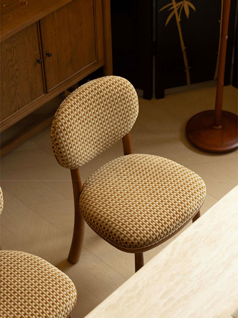 Our checkered fabric solid wood chair combines natural wood craftsmanship with soft, patterned upholstery to create a versatile seating solution. Available in two warm-toned checkered fabrics, it complements a range of interior styles from rustic to modern. The solid wood construction guarantees durability, while the ergonomic design prioritizes comfort. Whether used around a dining table, in a reading nook, or as a hallway accent, this chair adds character and functionality to any room.