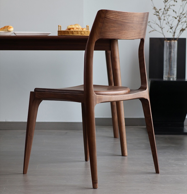 Our modern solid wood dining chair is a versatile seating solution crafted from premium Oak or Walnut, with a choice of leather or solid wood seats. The ergonomic curved backrest ensures lasting comfort, while the minimalist design complements a range of interior styles. Built for durability and aesthetic appeal, this chair elevates dining spaces, home offices, and commercial settings, blending natural wood beauty with contemporary design for a sophisticated, functional addition to any space.