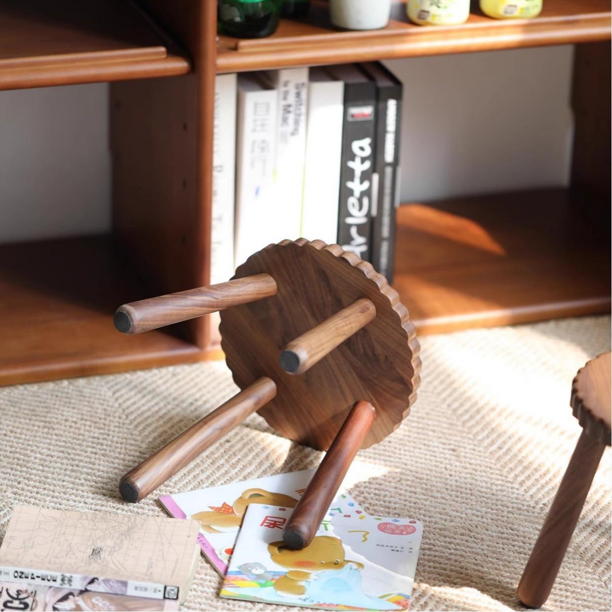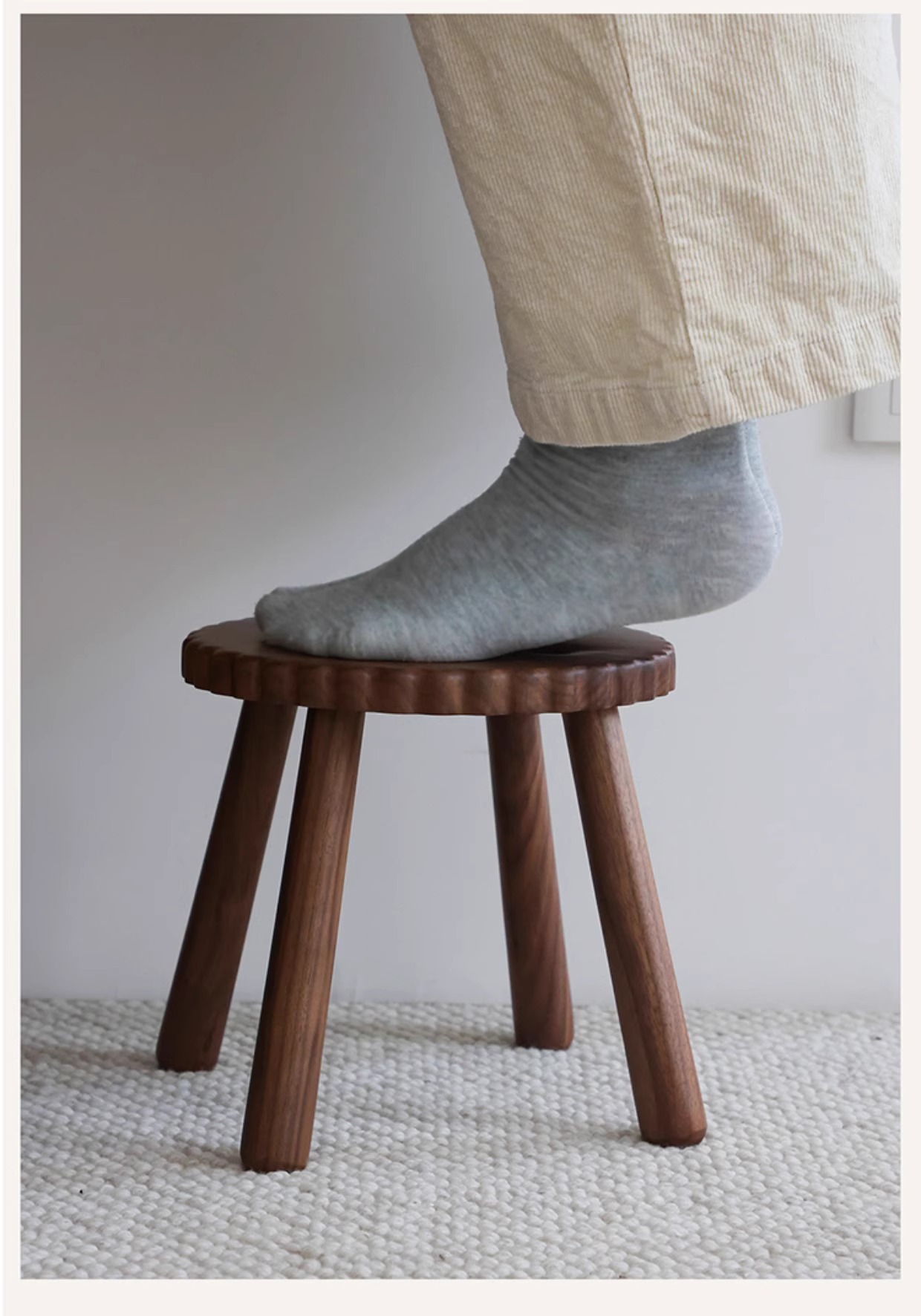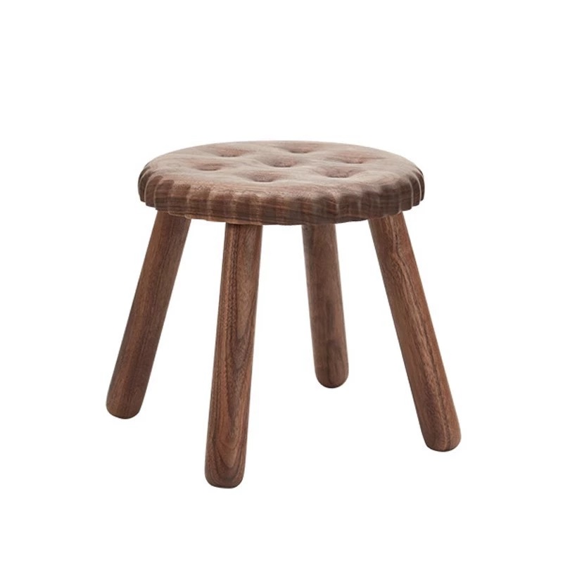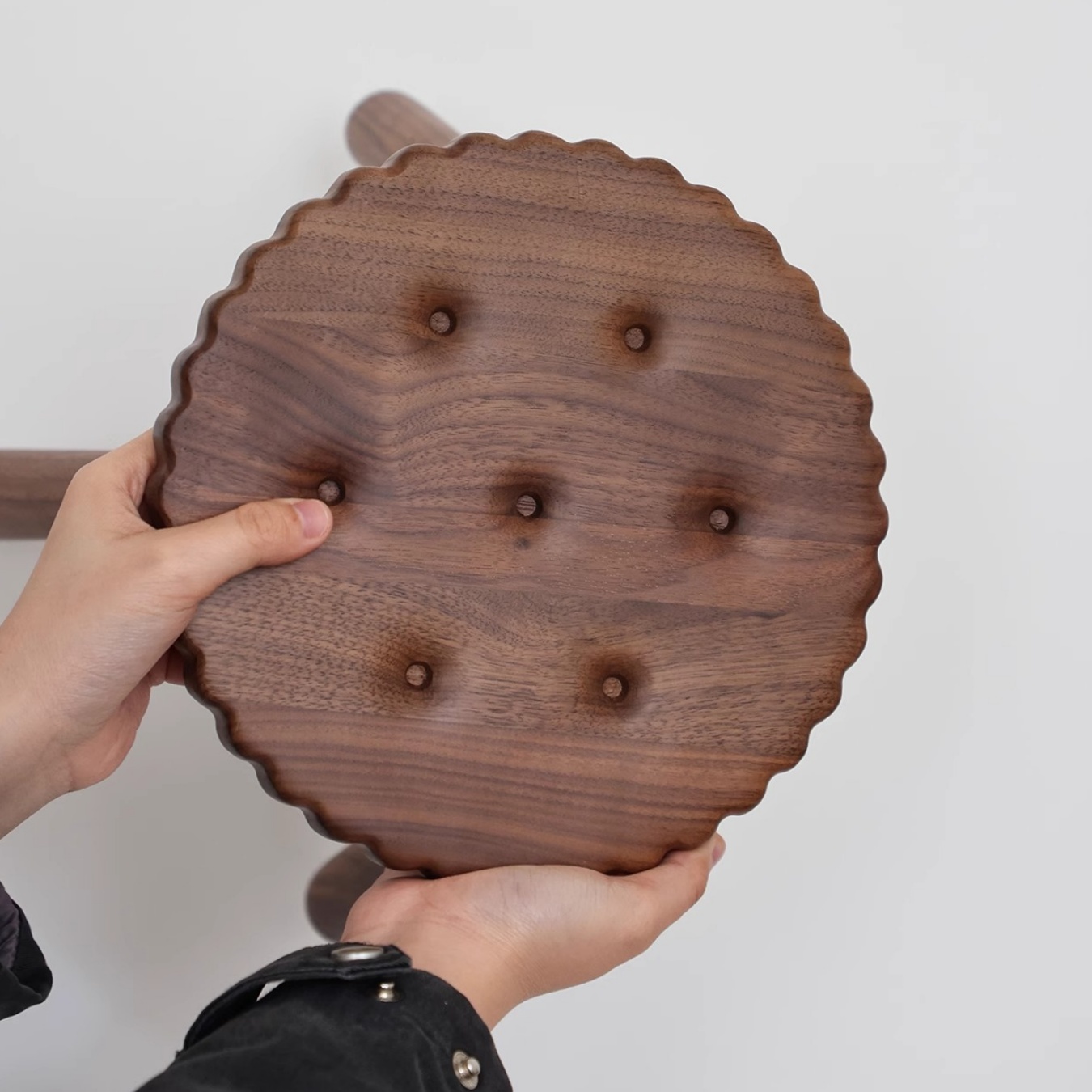 Our cracker-inspired solid walnut stool is a fusion of creativity and natural beauty. Made from high-quality North American black walnut, it features a distinctive cracker design with scalloped edges and embossed hole details, making it a standout piece in any room. The sturdy four-legged construction ensures durability and stability, while the smooth finish highlights the wood's inherent texture and warmth. Versatile enough to serve as a kids' stool, a side seat, or a decorative accent, it adds a playful yet sophisticated touch to homes, blending functional seating with artistic design.