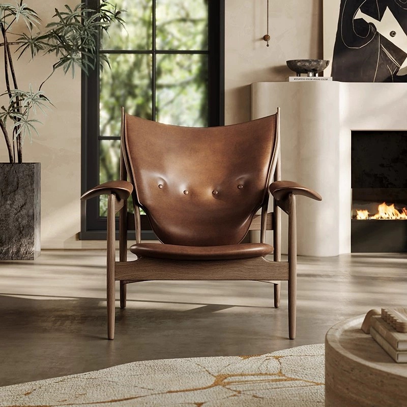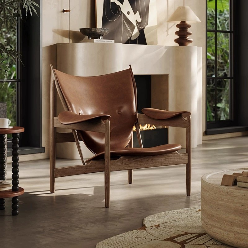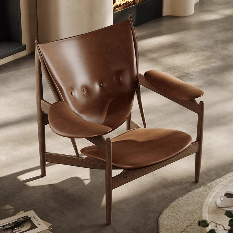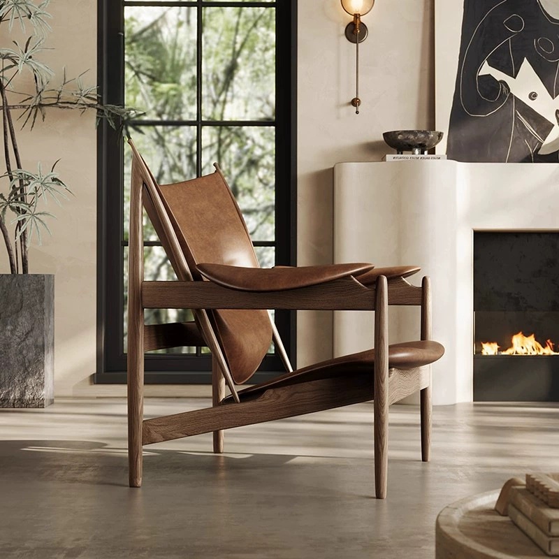 Our ash wood and leather accent chair combines the strength of solid ash wood with the sophistication of genuine leather. The ergonomic curved design ensures optimal comfort, while the natural wood grain and soft leather create a warm, inviting atmosphere. Versatile for residential and commercial spaces, this chair elevates any interior with its blend of natural materials, sculptural form, and premium craftsmanship.