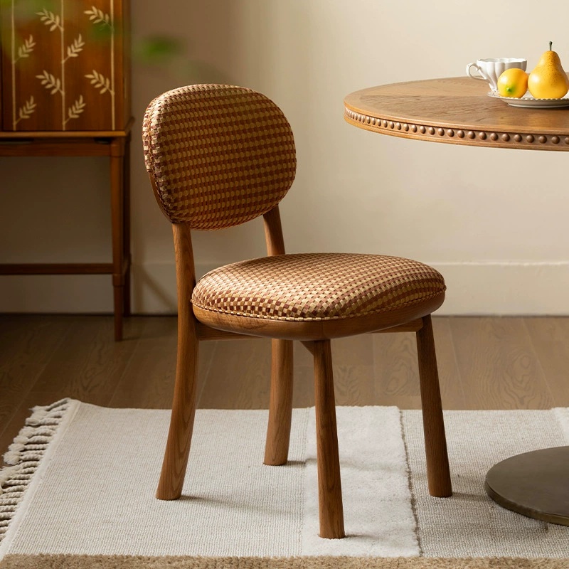 Our checkered fabric solid wood chair combines natural wood craftsmanship with soft, patterned upholstery to create a versatile seating solution. Available in two warm-toned checkered fabrics, it complements a range of interior styles from rustic to modern. The solid wood construction guarantees durability, while the ergonomic design prioritizes comfort. Whether used around a dining table, in a reading nook, or as a hallway accent, this chair adds character and functionality to any room.
