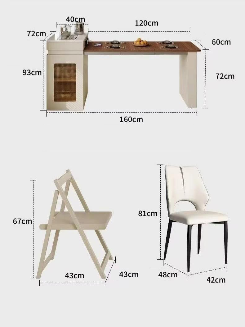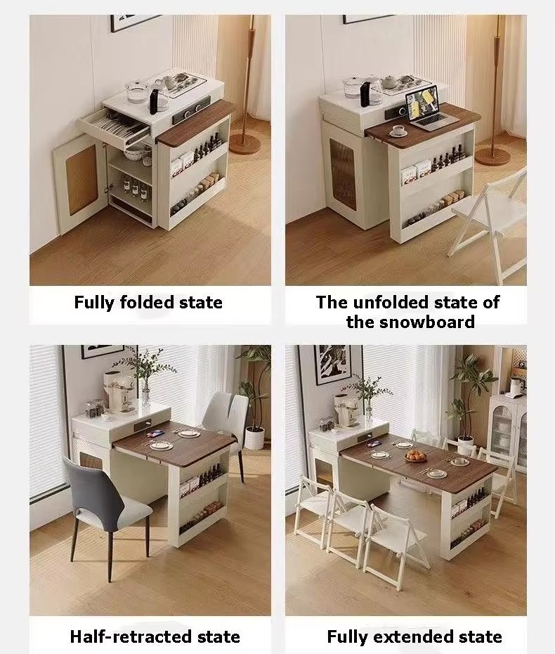 Foldable Dining Table with Integrated Chair Storage | Solid Wood Mobile Table for Small Apartments & Home Office 1601471401767