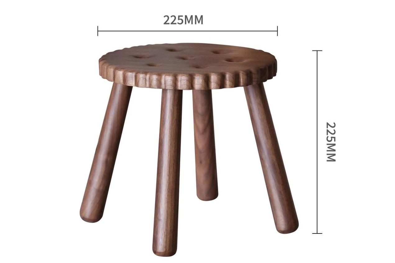 Our cracker-inspired solid walnut stool is a fusion of creativity and natural beauty. Made from high-quality North American black walnut, it features a distinctive cracker design with scalloped edges and embossed hole details, making it a standout piece in any room. The sturdy four-legged construction ensures durability and stability, while the smooth finish highlights the wood's inherent texture and warmth. Versatile enough to serve as a kids' stool, a side seat, or a decorative accent, it adds a playful yet sophisticated touch to homes, blending functional seating with artistic design.